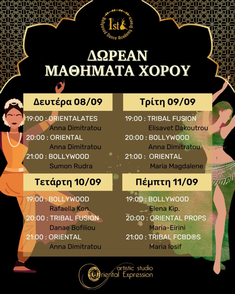 Register from 1st September by calling 210 9735888 or by sending an email to info@bollywoodacademy.gr